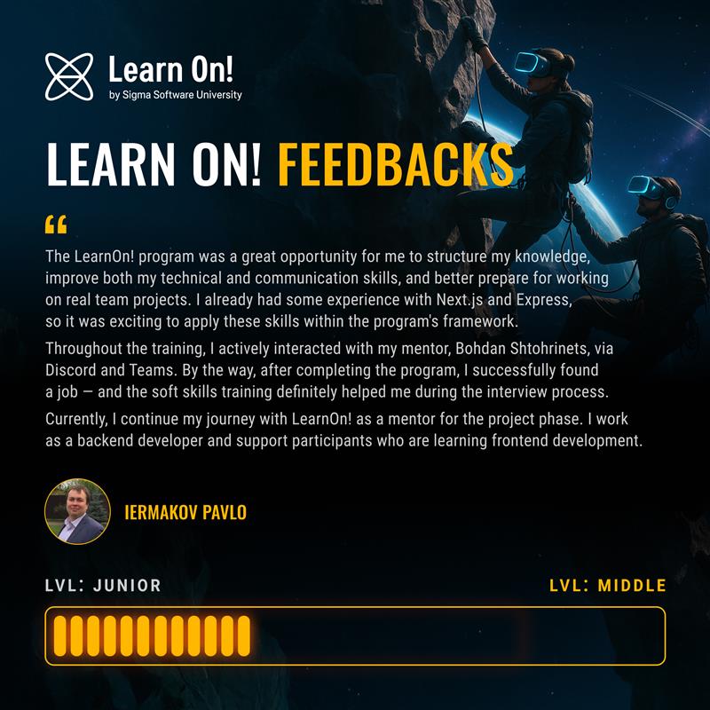 Learn On! is a young and innovative skill-boost program by Sigma Software University that already has 11 successful graduates.