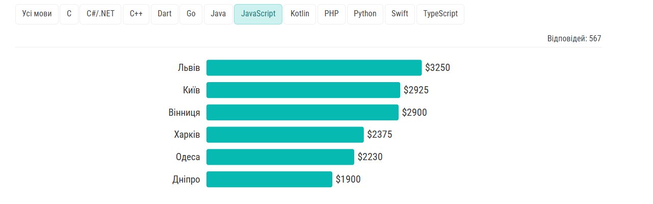 Скільки заробляють JavaScript-розробники порівняно з іншими мовами програмування