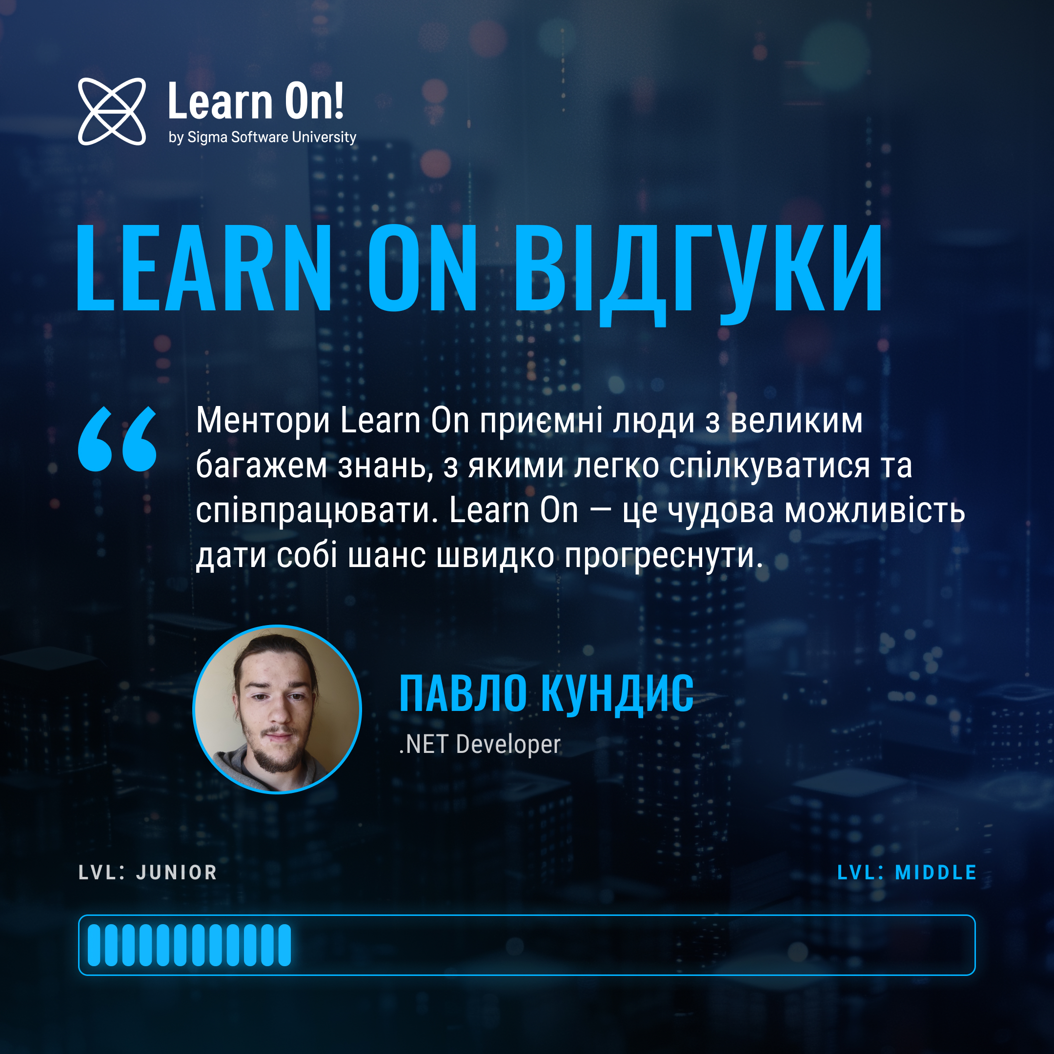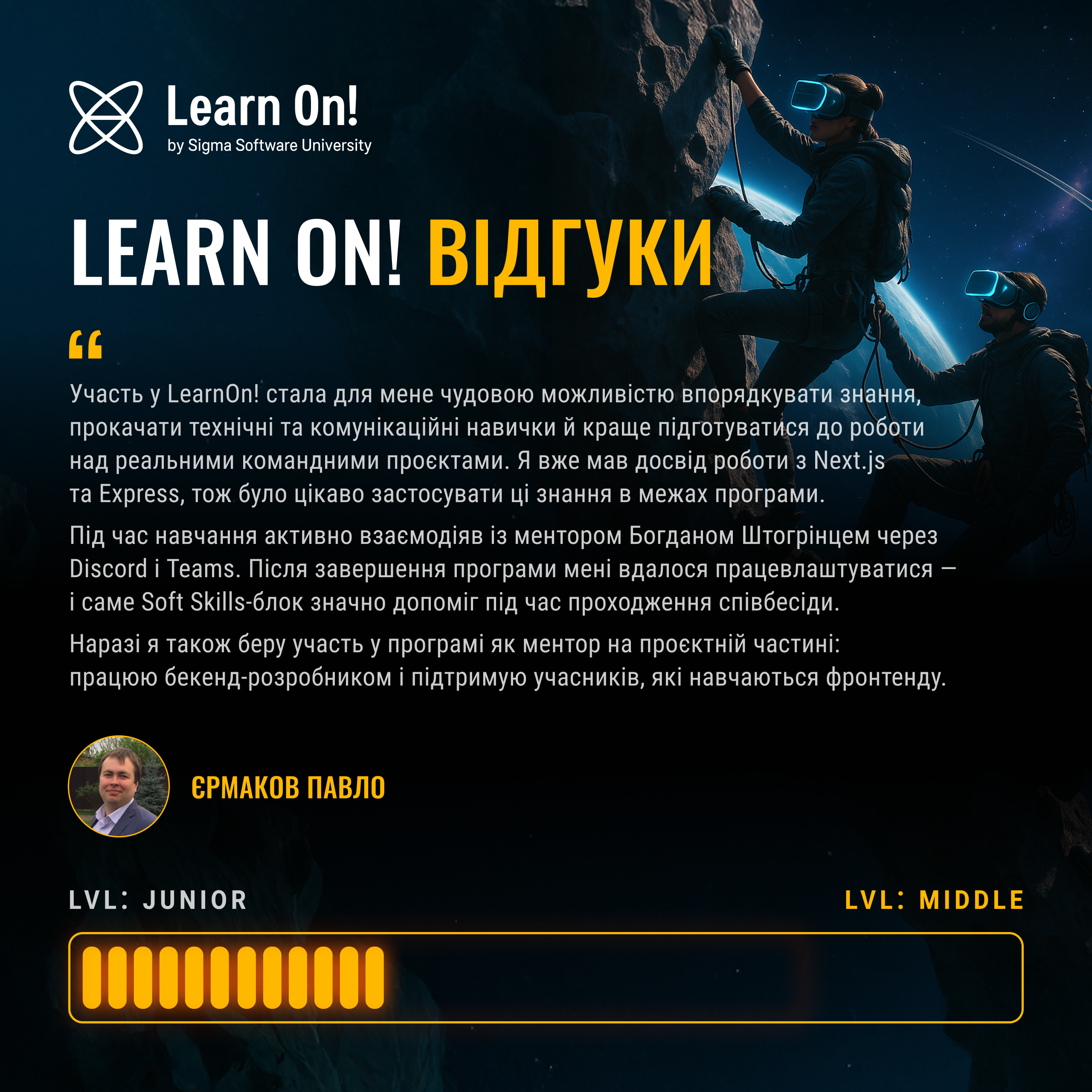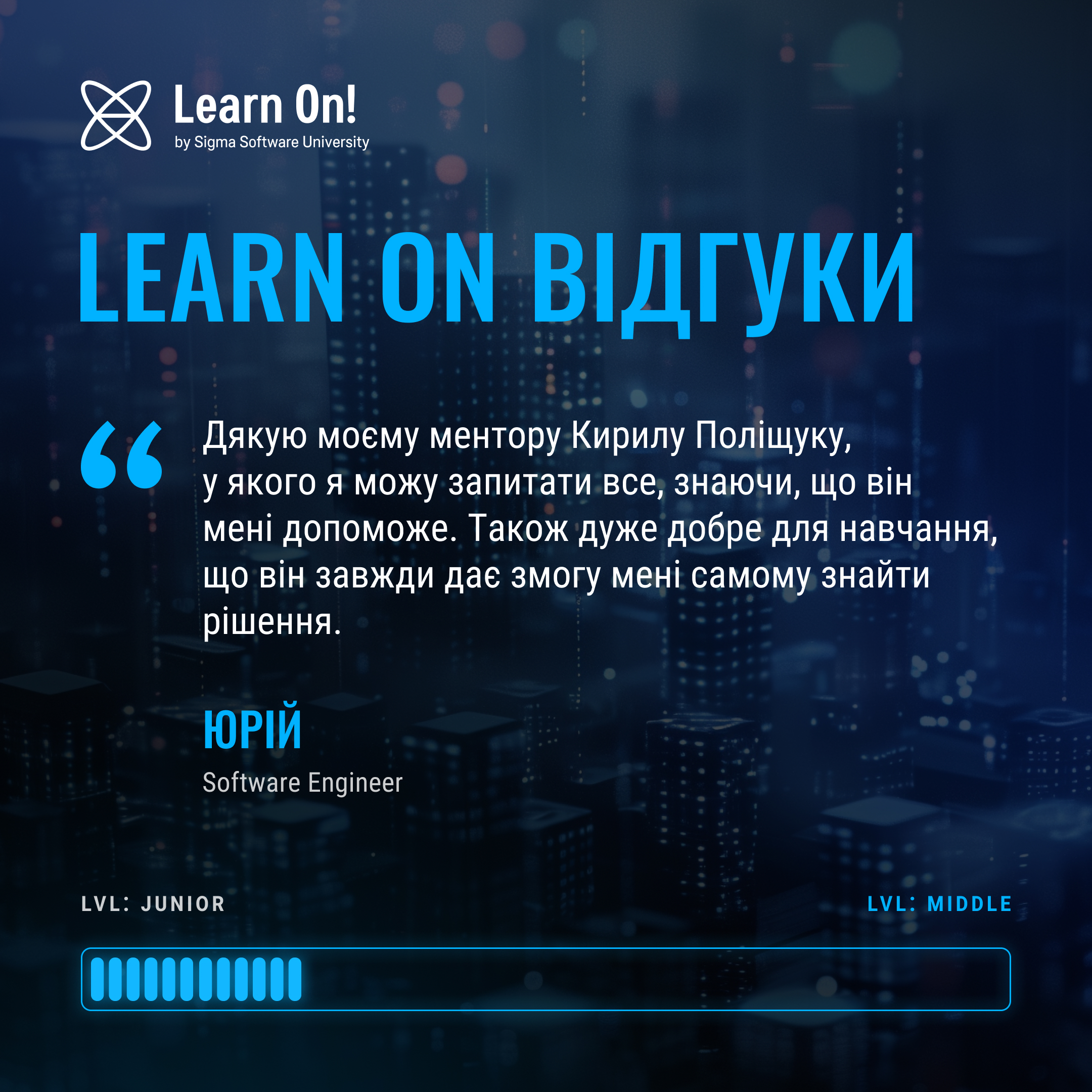 Learn On! — молода інноваційна програма прокачки скілів від Sigma Software University, яка вже має 11 успішних випускників.